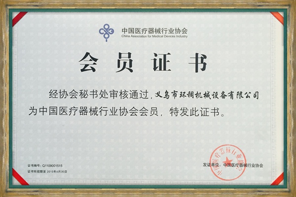 中國醫(yī)療器械行業(yè)協(xié)會(huì)會(huì)員證書