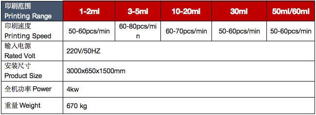 本設(shè)備可進(jìn)行無間隔連續(xù)印刷,鏈條傳動(dòng),雙循環(huán)風(fēng)電加熱干燥,配有凸輪分割器,產(chǎn)品間距小,傳動(dòng)平穩(wěn),干燥速度快??蚣転椴讳P鋼方管,門板為不銹鋼材料。能在同臺(tái)機(jī)器上印刷1-50ml注射器,帶有振動(dòng)料斗及自動(dòng)供料倉(cāng)。