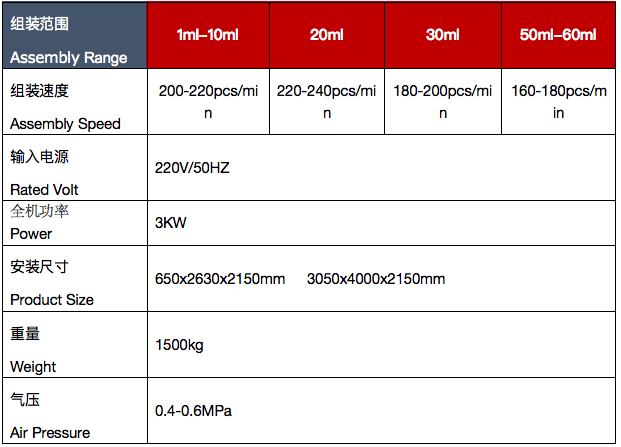u 本設(shè)備能組裝各種規(guī)格注射器,包括中頭直插式、螺口式、偏頭式等。對(duì)產(chǎn)品各配件進(jìn)行自動(dòng)上料、組裝。